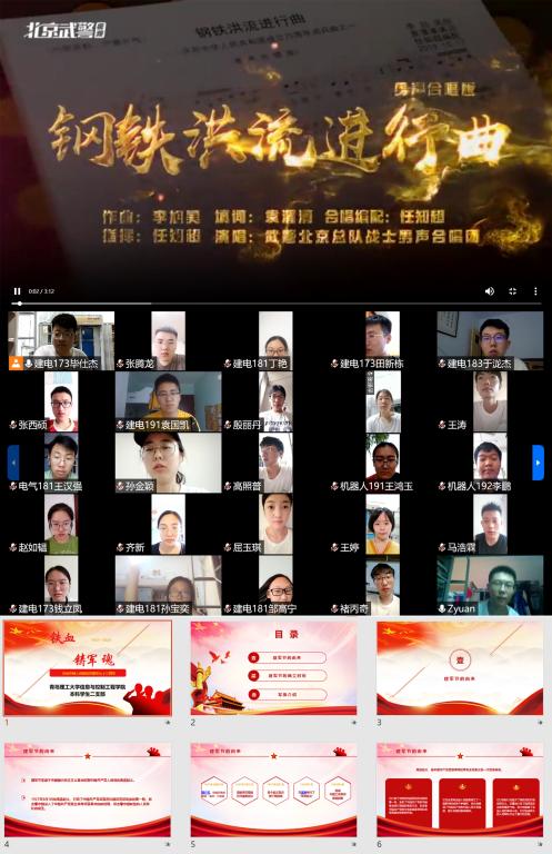 此次活动,由建军节的历史背景展开,“1927年8月1日的南昌起义,打响了中国共产党武装反抗国民党反动派的第一枪,标志着中国进入了中国共产党独立领导武装革命的新时期,标志着中国新型的人民军队的诞生。”建电173班毕仕杰同学说到:“从1927到2020,走过硝烟,走过风雨,诞生在战火中的人民军队,已经走过了93年史诗般的壮丽征程。哪里有危险,哪里就有人民子弟兵,在今年的新冠疫情和南方洪灾当中,解放军官兵们冲锋在前,逆行而上,他们是新时代最可爱的人。”