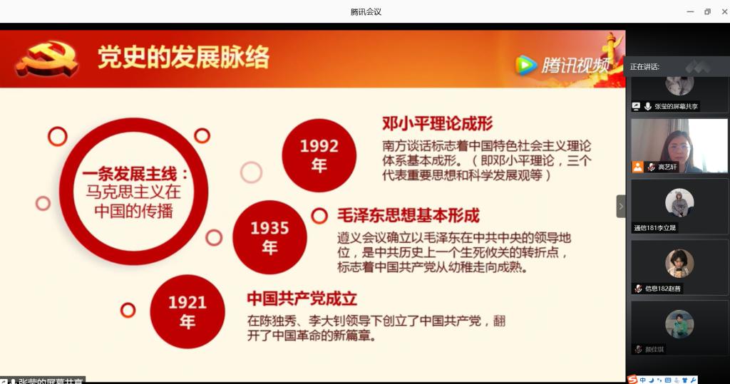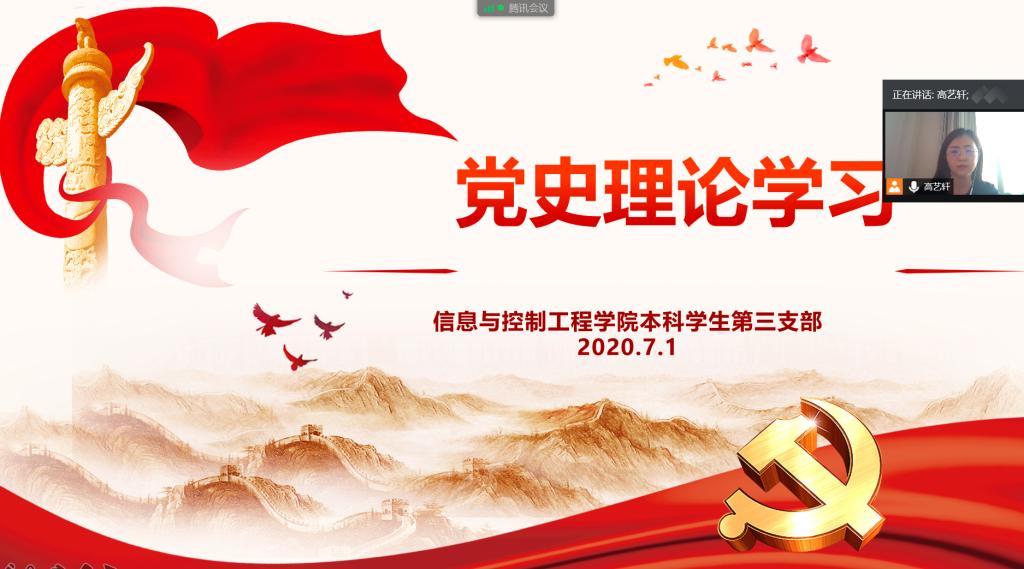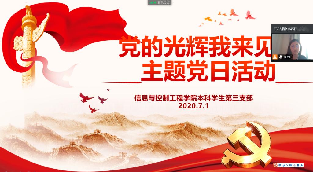 为庆祝中国共产党成立99周年,贯彻落实习近平总书记十九届四中全会精神,加强样板党支部建设工作,402cc永利官网本科学生三支部于2020年7月1日上午9点召开线上支部大会,开展“党的光辉我来见证”主题党日活动,统一学习回顾中国共产党的发展历程与光辉印记。支部书记高艺轩主持,支部宣传委员薛腾飞、组织委员贾戈及支部党员和积极分子参与会议。