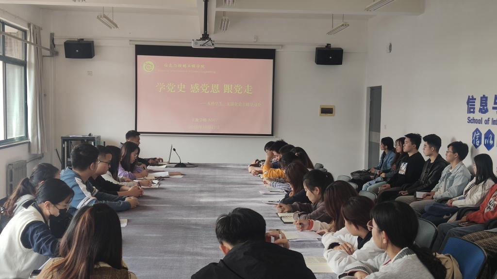 为深入贯彻习近平总书记关于深入学习党史、新中国史、改革开放史、社会主义发展史的重要指示精神,推动全体党员知史爱党、知史爱国,不忘初心、牢记使命,继往开来。402cc永利官网本科学生一支部于10月21日中午在教学楼A507会议室开展“学党史感恩党 跟党走”10月份理论学习。本次会议由党支部书记孙海英主持,组织委员张丽、宣传委员逄超和支部全体党员和发展对象参加了学习。
