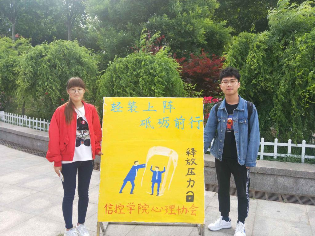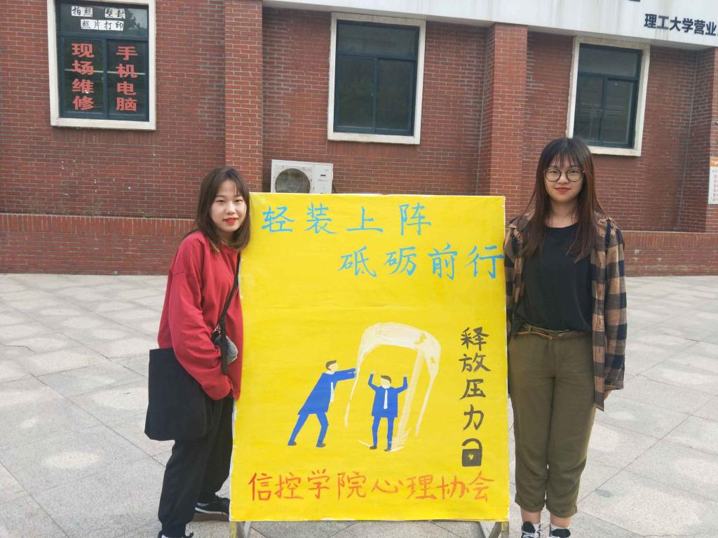 为全面提高学生的心理健康素质,在我们第十六届“5·25”心理健康文化节到来之际,5月25日,402cc永利官网大学生心理健康协会,分别于嘉陵江路校区食堂、操场,长江路校区二教、学生宿舍等地举办“5·25我爱我----轻装上阵,砥砺前行”主题活动。