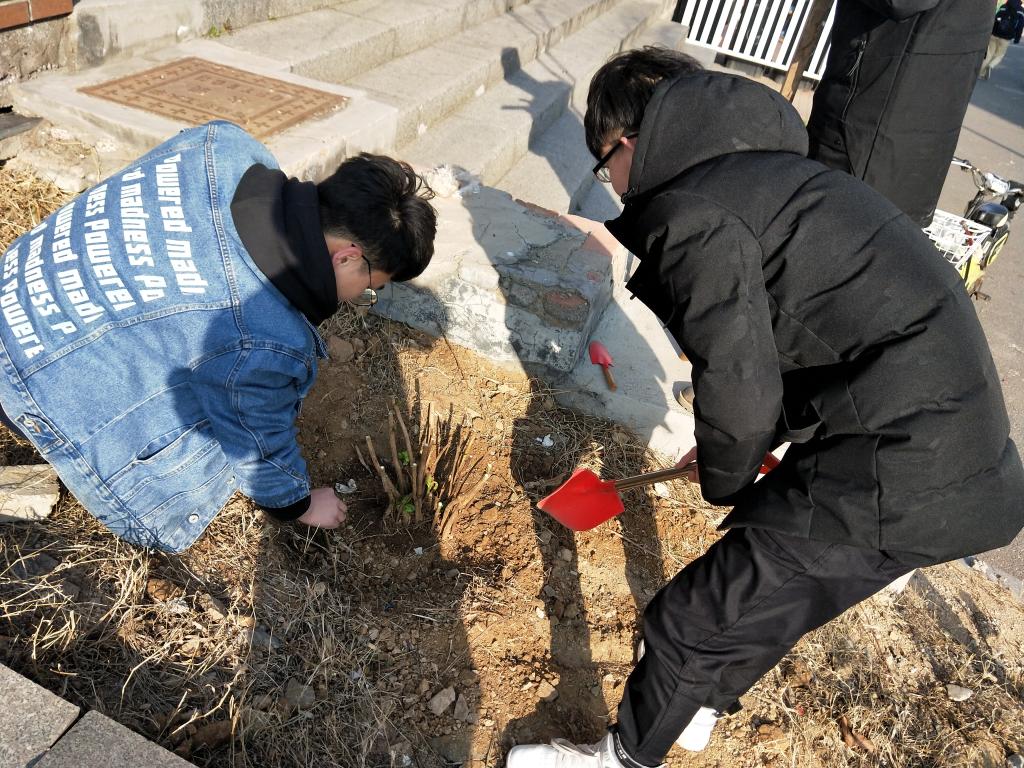 据研究证明,园艺爱好者的皮质醇水平会低于正常人,而皮质醇则是调节人体压力的重要指标,也就是说养花种菜能够很好地转移人的注意力,对舒缓压力的帮助是非常大的。学院学生利用三个下午的空闲时间,在嘉陵江路校区八公寓前的空地上,栽种了数十棵月季花、绣球和丁香花树苗。紫色丁香的话语是光辉、友谊、青春纯洁的记忆。绣球花花语是希望、浪漫、圆满和团聚,极富忍耐力和包容力。月季花语是等待有希望的希望,幸福、光荣、美艳长新。同学们在荒地上捡拾废石、整地、挖坑、栽种、浇水的过程中尽情挥洒汗水,安抚心理,种下希望,传递情感。园艺不仅是空闲时间的娱乐活动,还是舒缓生活压力,改善健康的生活方式,有助于调节心理健康、锻炼身体,减少各种严重的疾病,这就是通过汗水和热情来保持健康身体和美好心情。