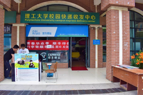 快递收发中心位于田径场下方北侧,可以收发快递。旁边的中国邮政可以收发信件,同时经常乘坐公交的同学也可以在这里办理和充值琴岛通。除了这里还有唯一篮球场旁的校医院快递以及位于北七公寓楼下的菜鸟驿站。