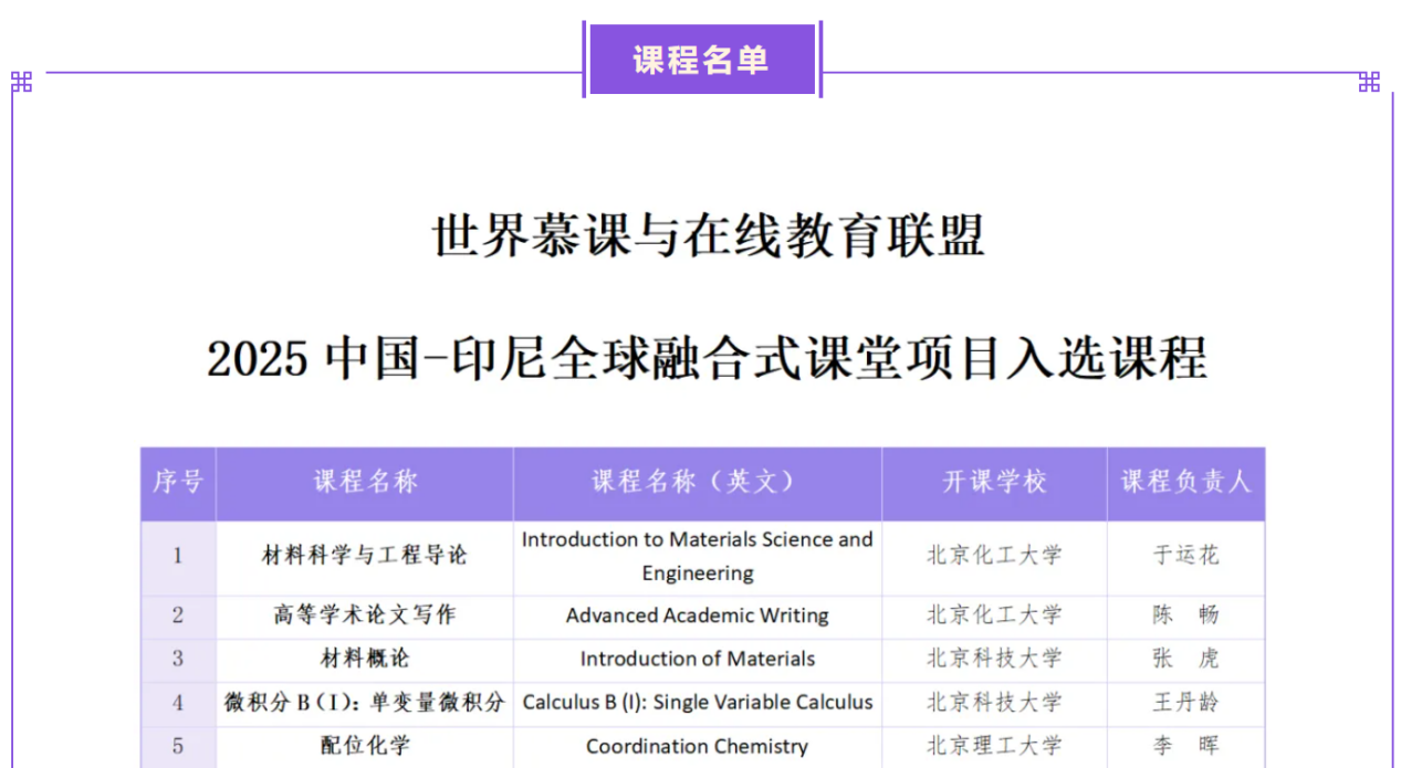 “中国-印尼全球融合式课堂项目”是在世界慕课与在线教育联盟推动下,为高质量落实《推进共建“一带一路”教育行动》而发起的高层次国际合作项目,支持打造教育对外开放新高地,深化拓展中国与印度尼西亚在高等教育领域的互利合作和交流互鉴,2025年全国共遴选出129门课程面向印尼学生开放共享。